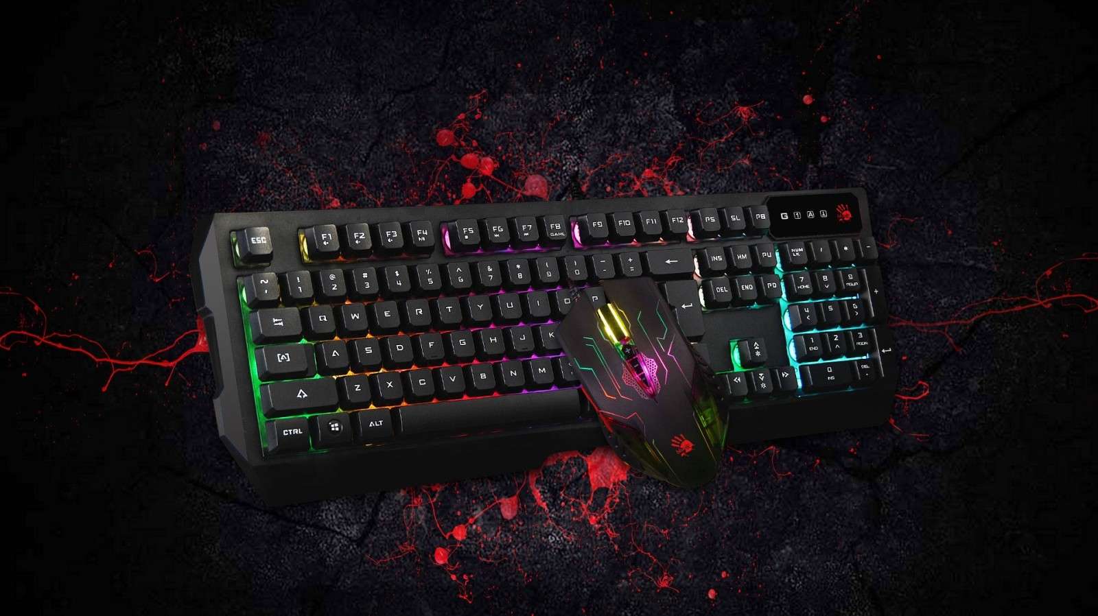 Bloody Neon Light Gaming Keyboard + USB Mouse | Q1300 (Q135+Q50)