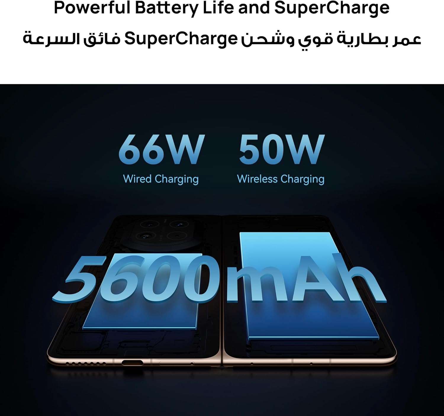 • Powerful Battery Life and SuperCharge: Dual cell battery (1850 mAh) and (3750 mAh) Battery capacities, HUAWEI SuperCharge of 66 W wired and 50 W wireless
