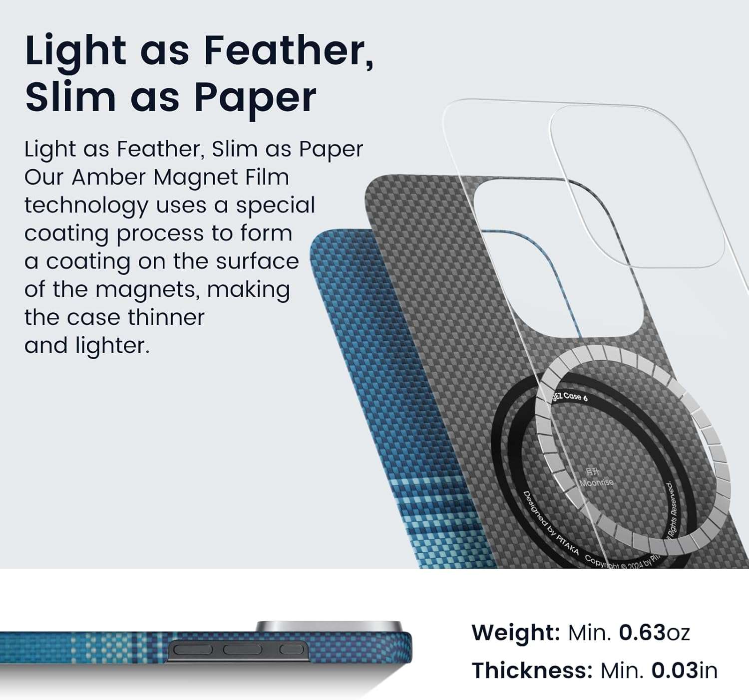 Model: Pitaka for iPhone 16 Pro Max Case Compatible with MagSafe, Thin & Light Case iPhone 16 Pro Max with a Caseless Feel, 1500D Aramid Fiber Woven [Tactile Woven Case] (Moonrise)